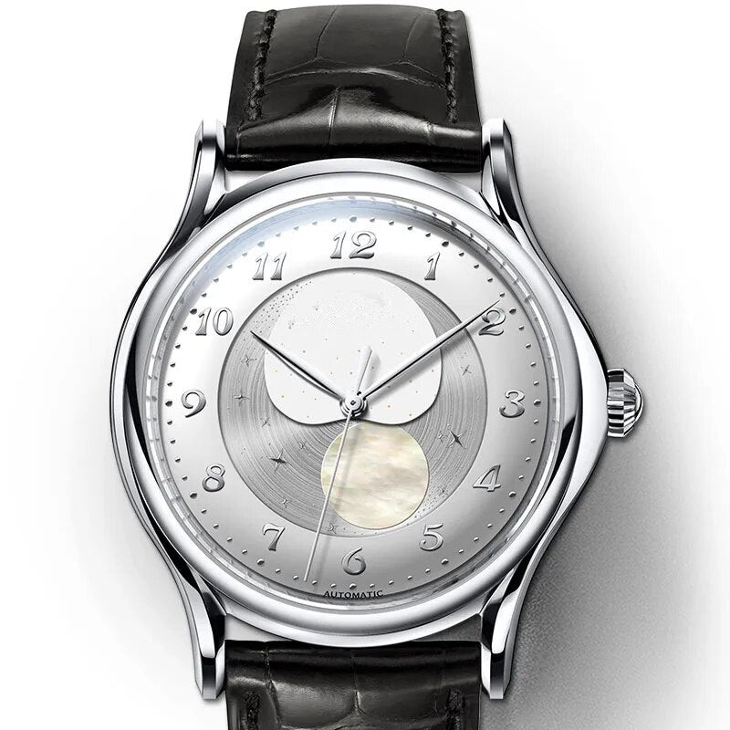 • Men’s Moon Phase Automatic Movement Luxury Mechanical Watch